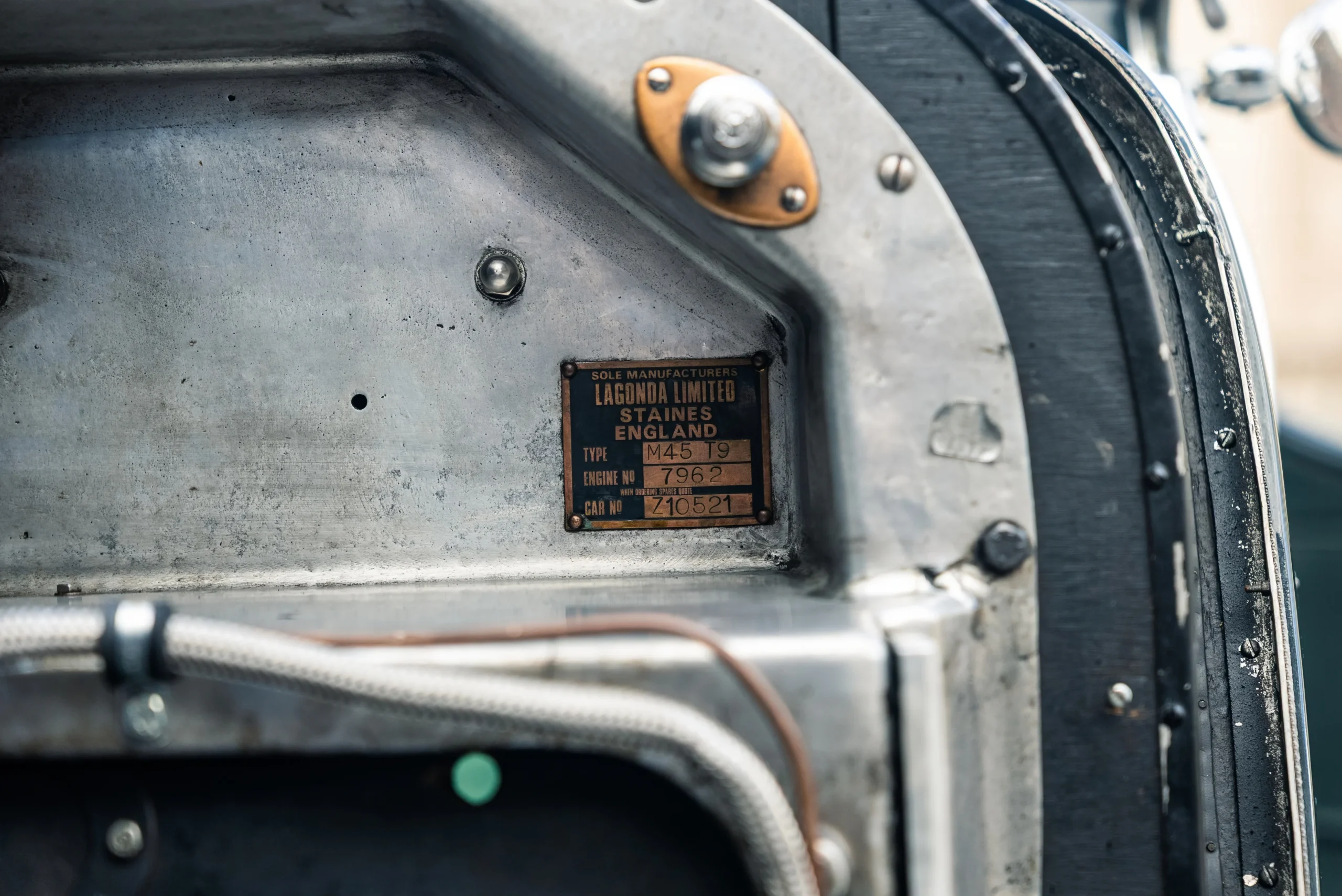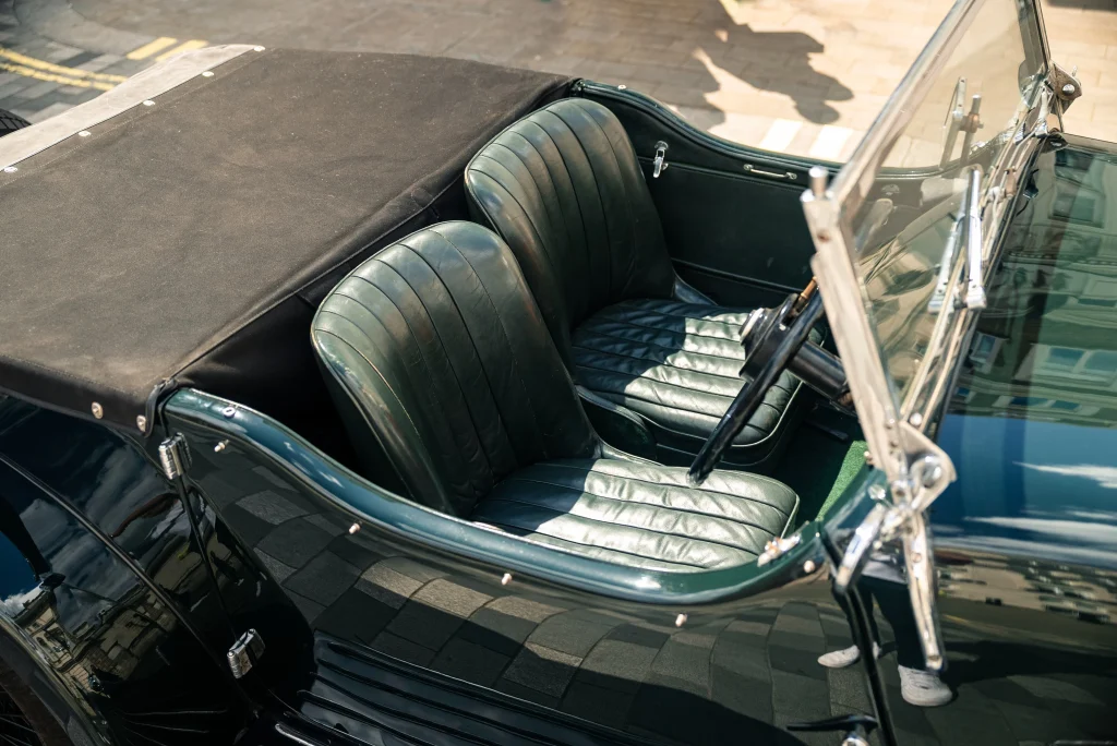 As with many Lagondas, time and changing tastes would reshape this car’s identity. In the mid-1980s, the car was discovered in the well-known Forshaw’s yard (Aston Service Dorset), long regarded as a treasure trove for Lagonda and Aston Martin enthusiasts. From this point, the original ST34 chassis was shortened to T9 Tourer specification and expertly rebodied using original M45 Rapide T9 coachwork, notably sourced from a 3-litre Bentley. This work was carried out by respected marque specialist David Ayre, who continues to maintain the car today. The result is a car that reads as entirely “right”: proportioned with intent, mechanically faithful, and visually coherent.