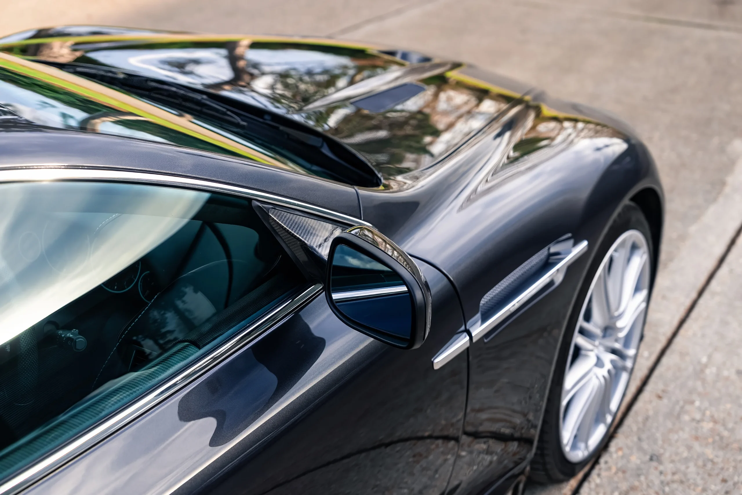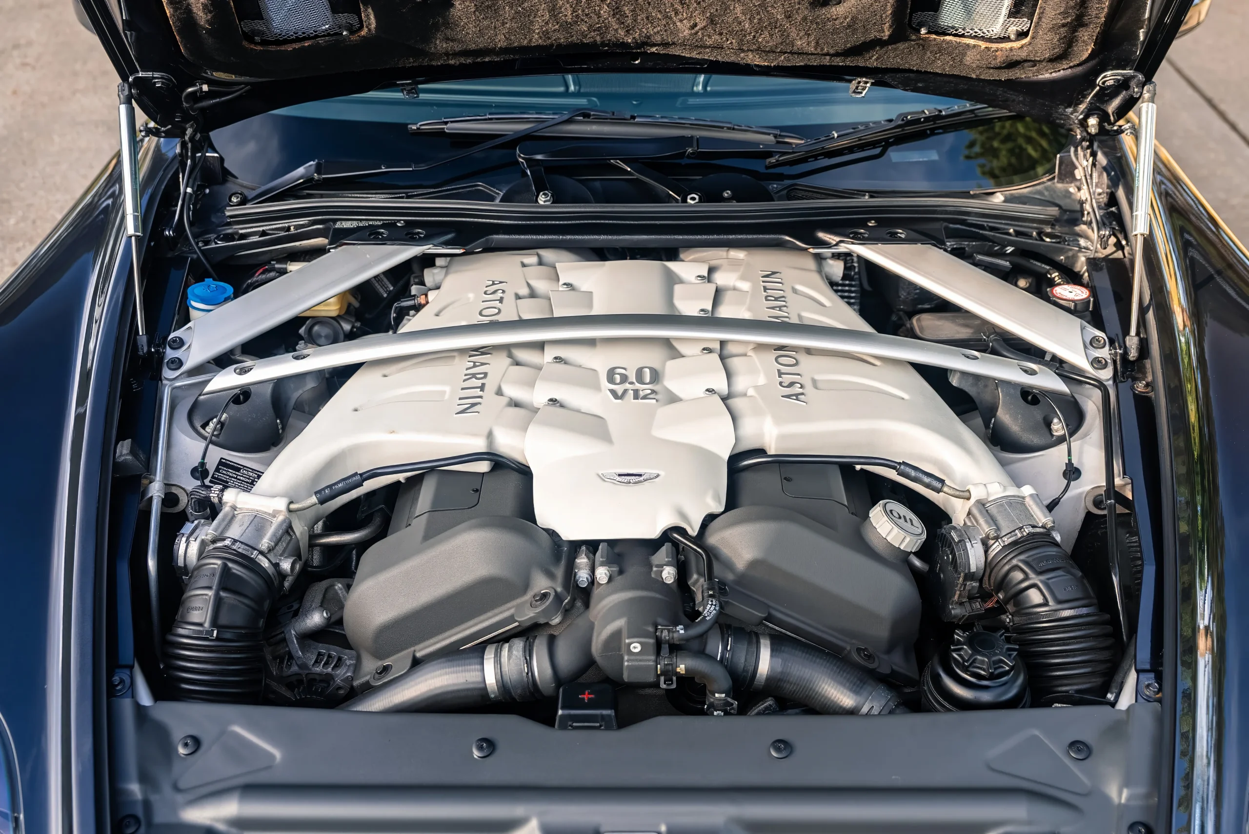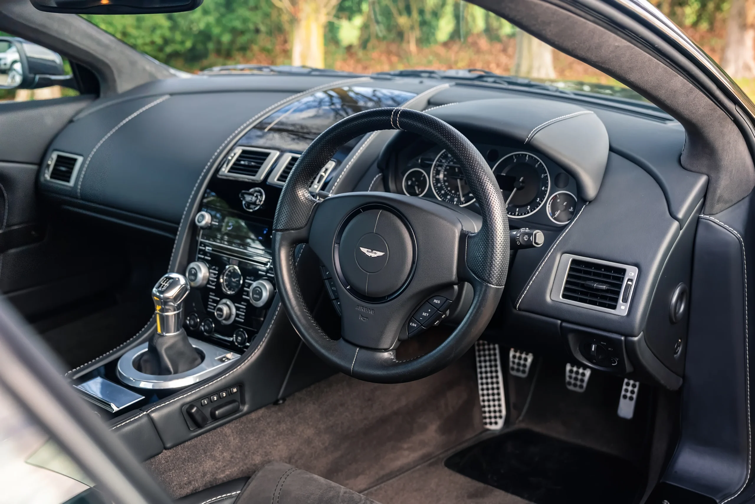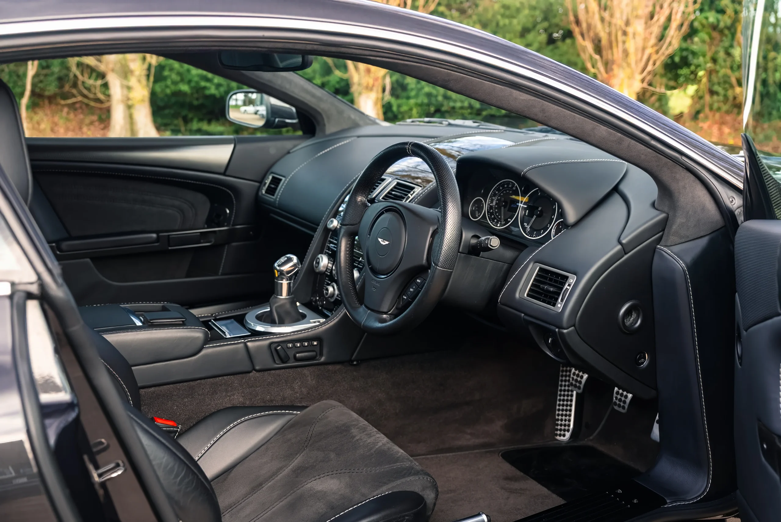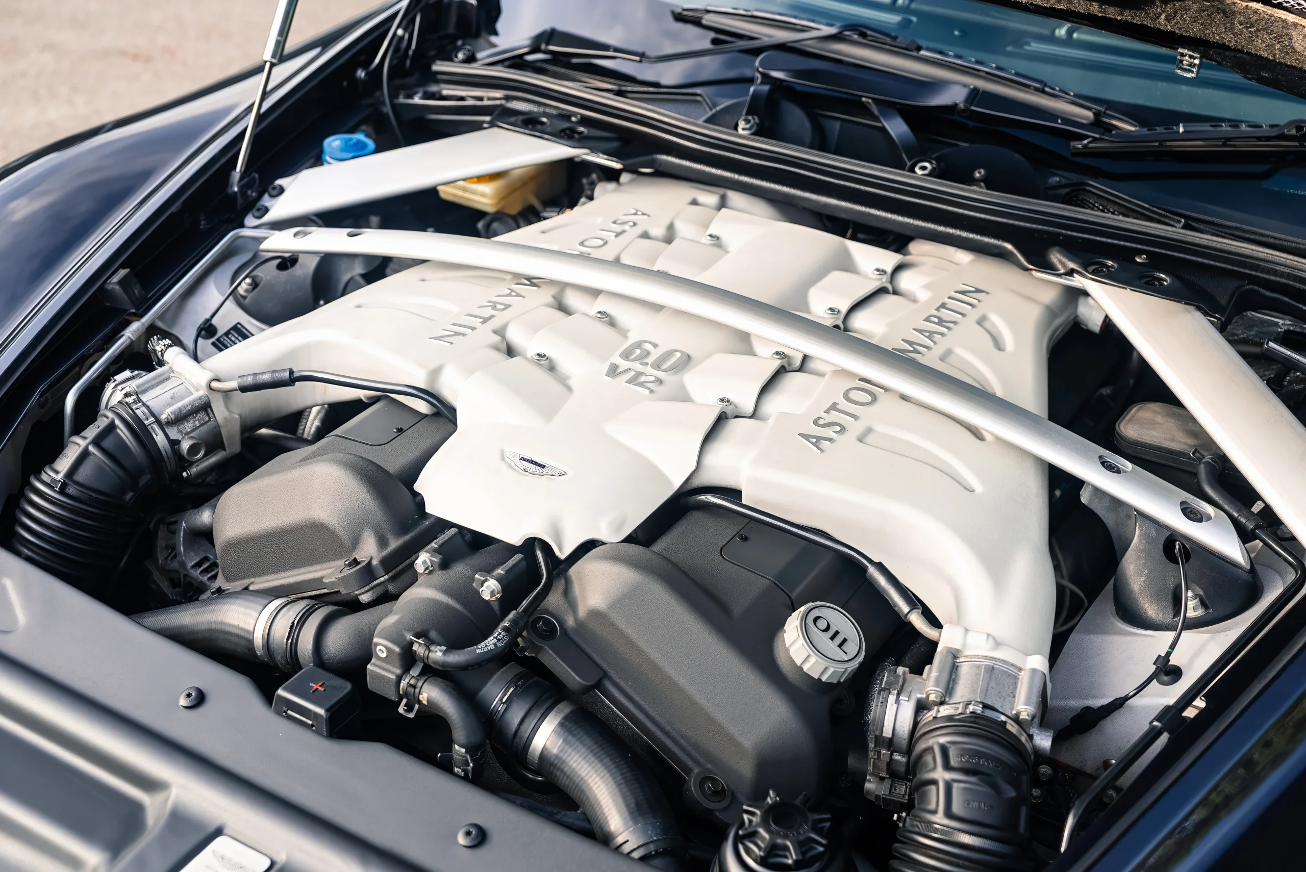 Crucially, the DBS was more than a styling exercise. Extensive use of carbon fibre, paired with carbon ceramic brakes as standard, delivered weight saving and a clear uplift in intent over the DB9 on which it was based. Offered with a six-speed manual gearbox, the DBS has since become recognised as one of the last truly analogue V12 GT cars, naturally aspirated, manual, and refreshingly free from modern drivetrain complexity.