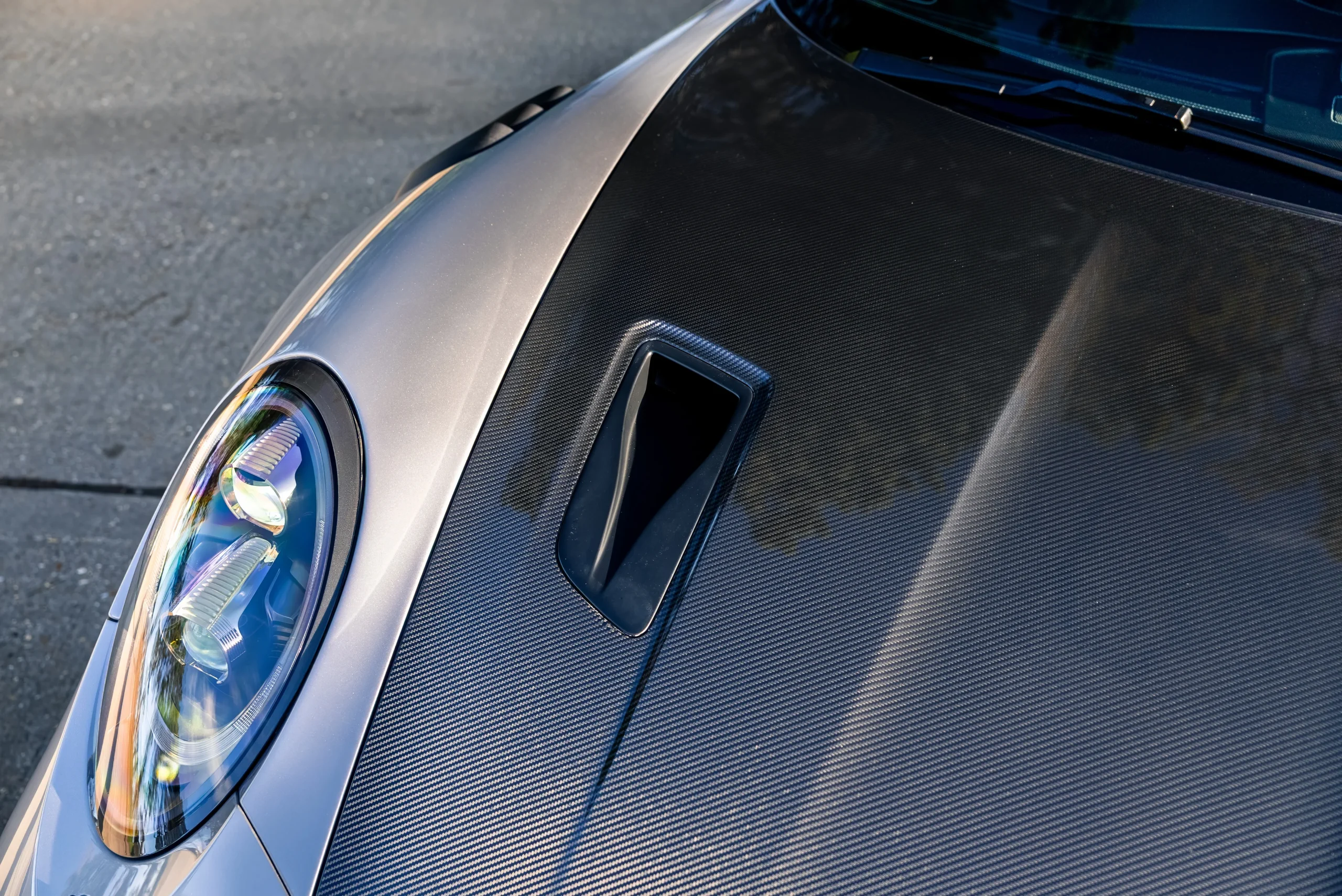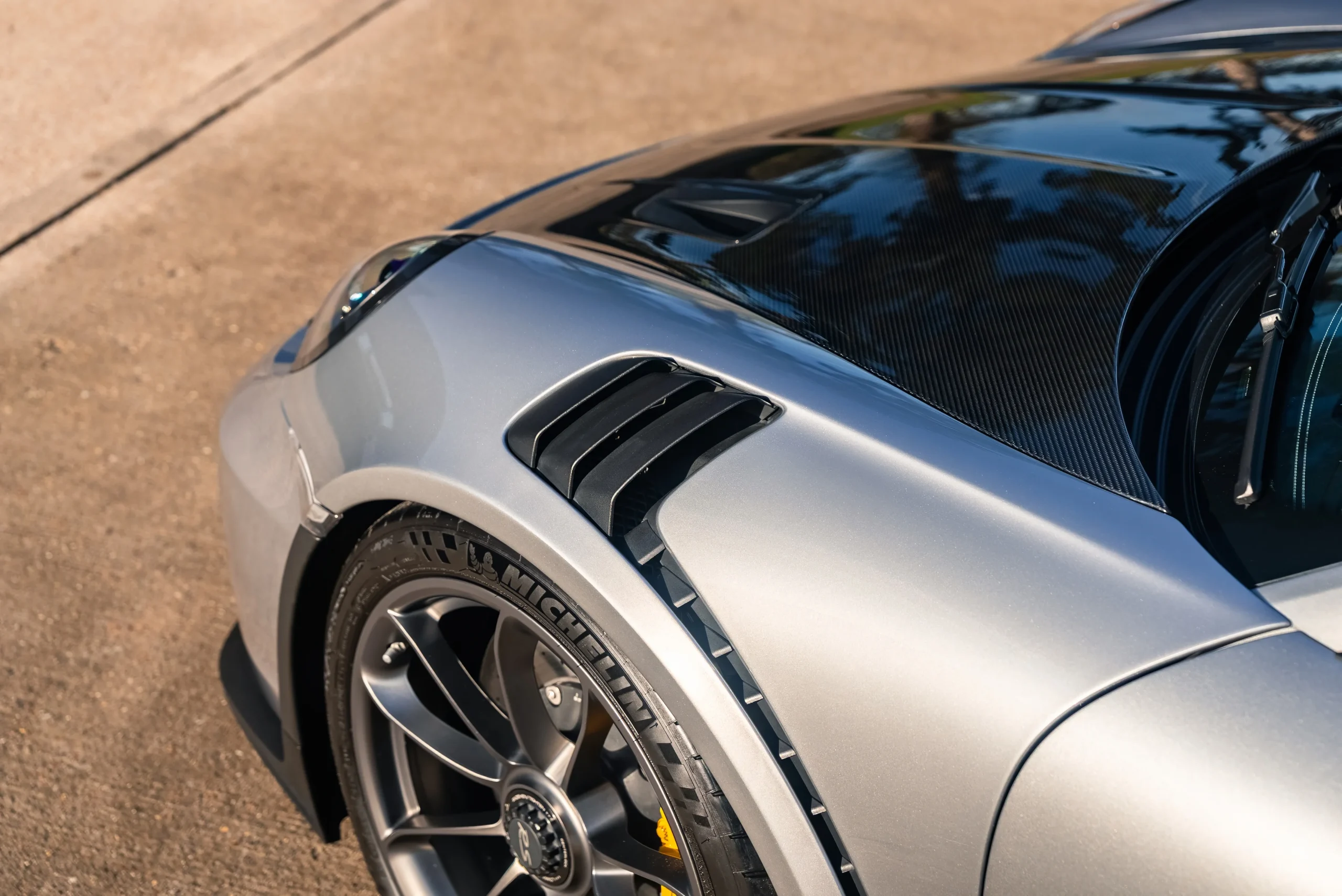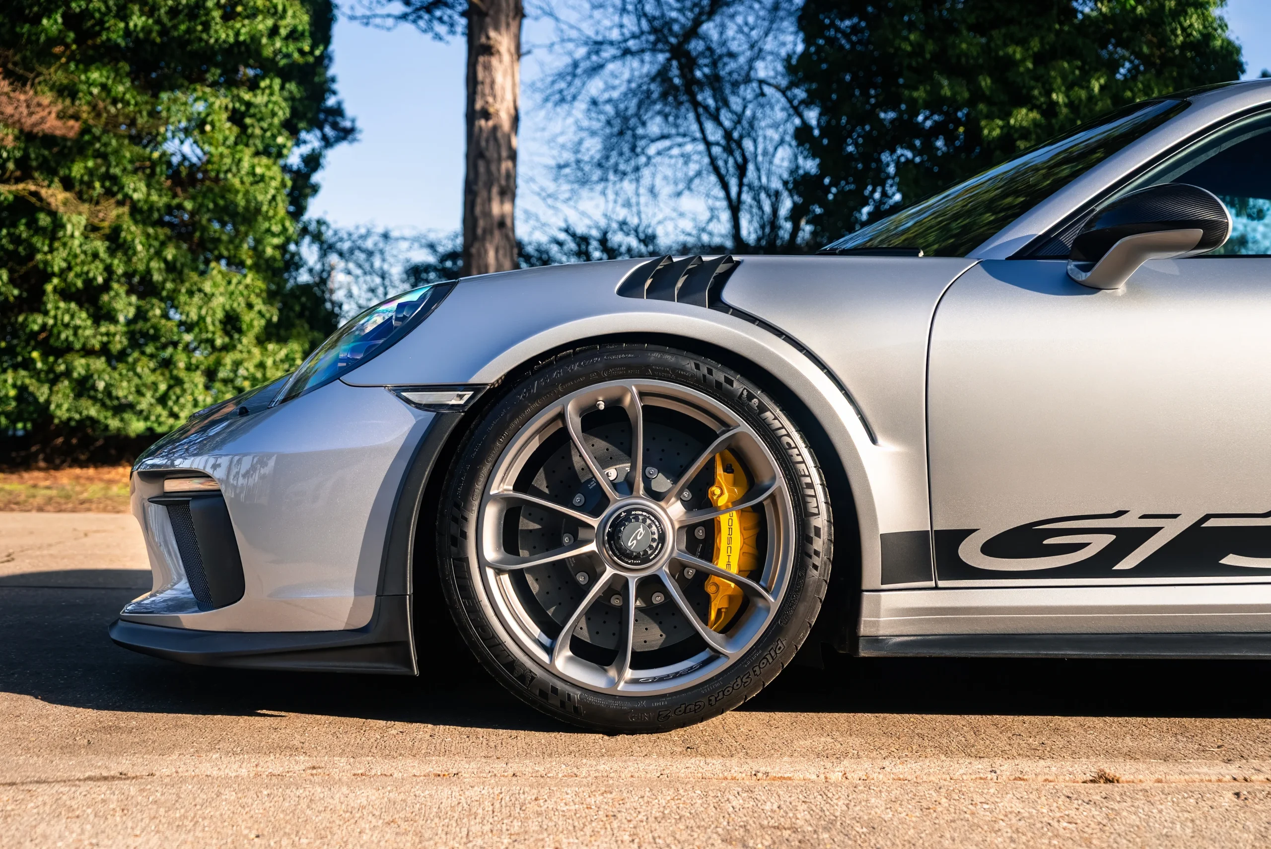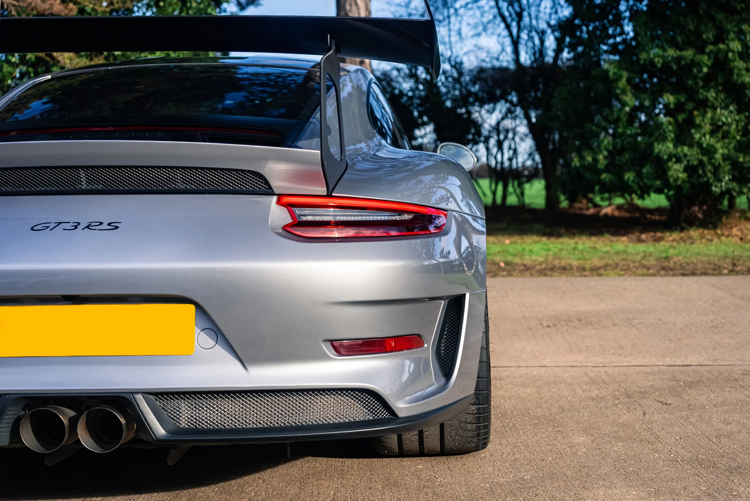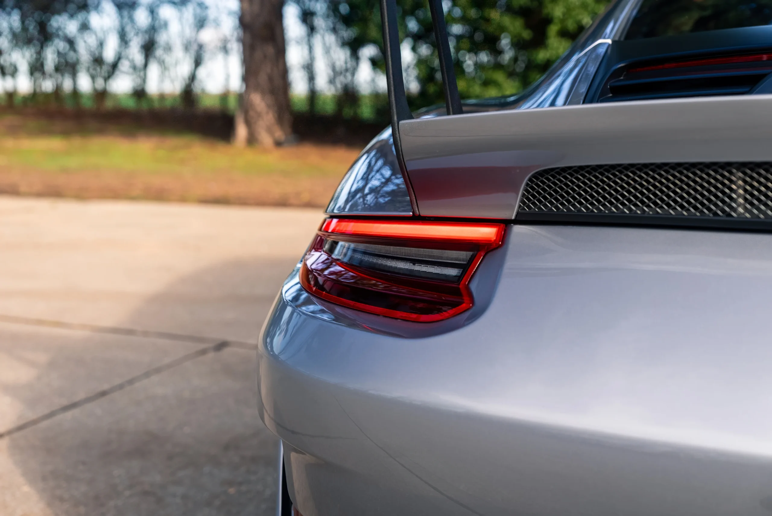 Visually, the 991. 2 GT3 RS is most easily distinguished from the earlier 991. 1 by the introduction of NACA ducts in the front bonnet, alongside revised front bumper intake detailing to support the updated cooling layout. The wider 991. 2 facelift also brought updated rear lights, giving the later cars a subtly more modern appearance.